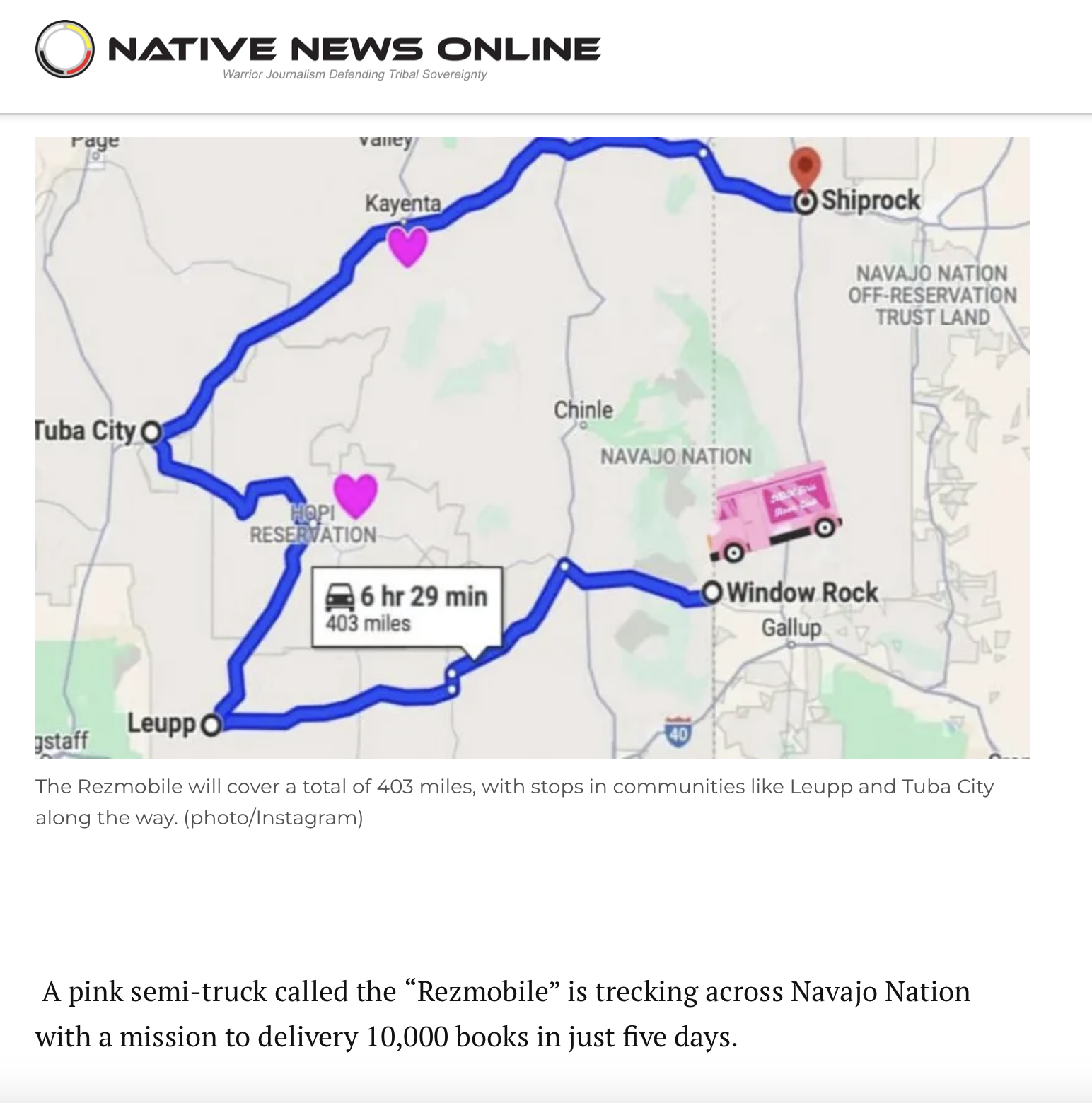 The Rezmobile covered a total of 403 miles, with stops in communities like Leupp and Tuba City along the way. (photo/Instagram)